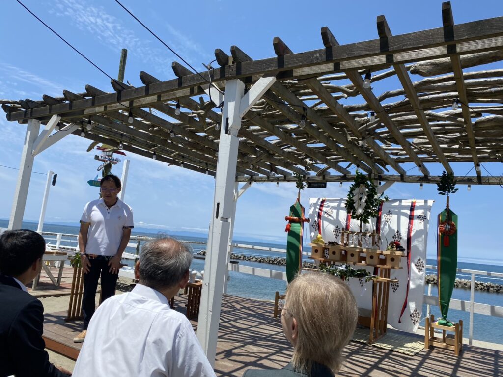 今年も海での事故が起こらないように浜茶屋の皆さんや関係者の皆さんと安全祈願。