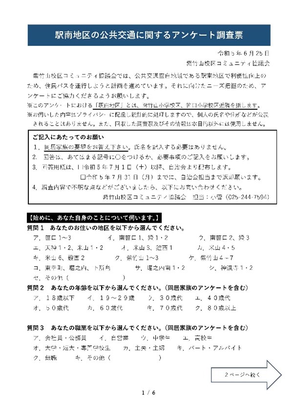 住民バスアンケートは紫竹山を中心として