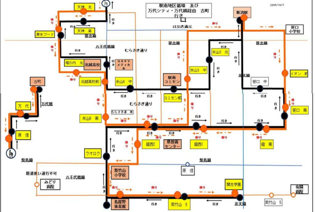 新潟市中央区ですでに住民バスとして走っている下町の「にこにこ号」に紫竹山コミュ協の皆さんと一緒に試乗。