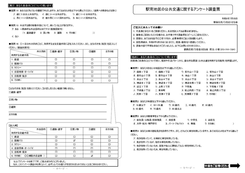第2回住民バスアンケートを調査開始
